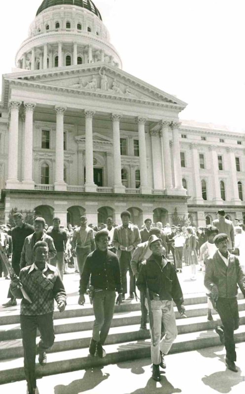 أعضاء منظمة «الفهود السود» أمام مبنى الكابيتول بولاية كاليفورنيا